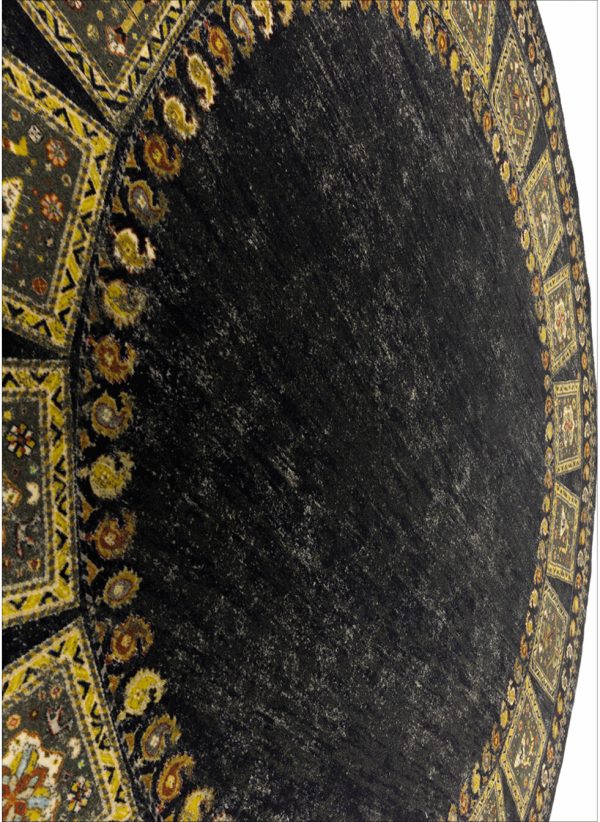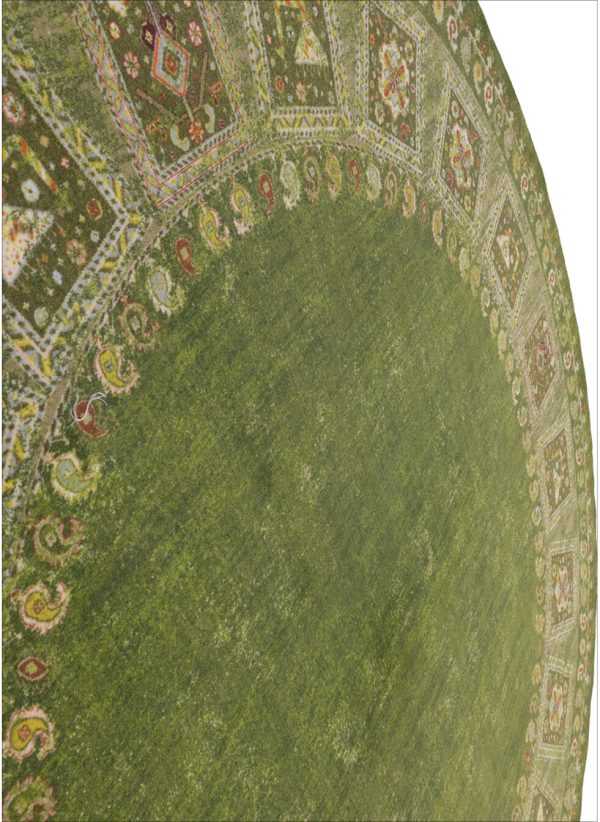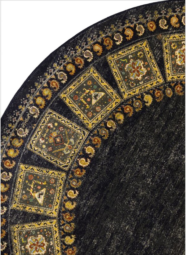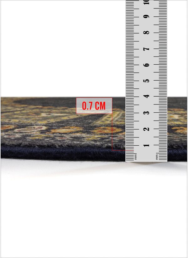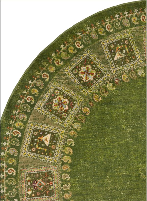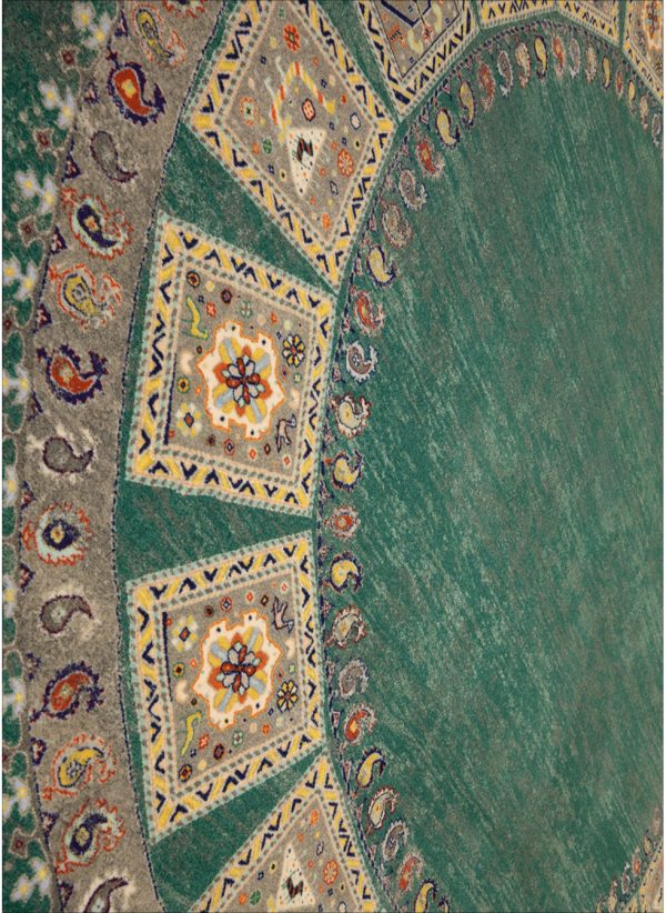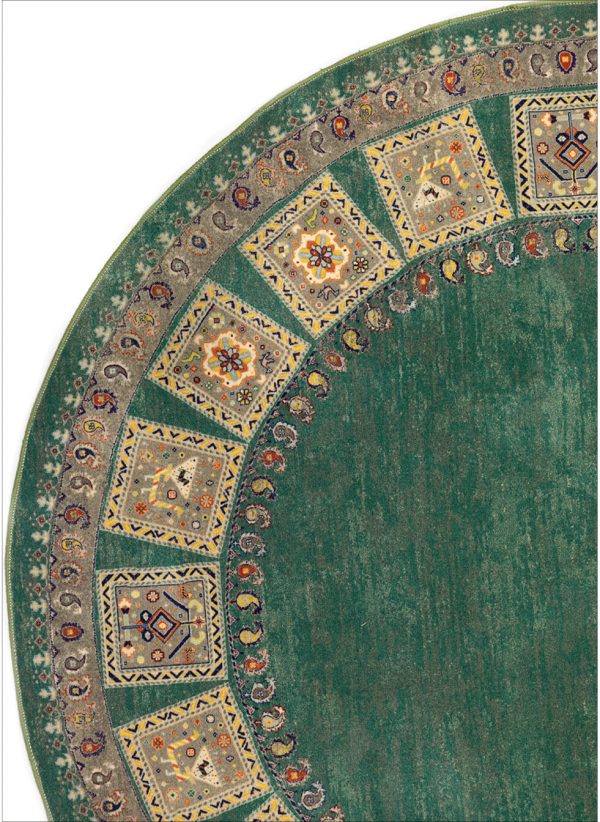 پیشنهادی عالی برای کسانی که به دکوراسیونهای خاص و پرجلوه علاقه دارند. فرش ماشینی طرح گبه با نقش و نگارهای کوچک و رنگینی که دارد به فضای خانه شما جلوه ای بی نظیر میبخشد. قالیچه ی گرد طرح گبه در رنگبندی آبی، آبی روشن، سبز، سبزآبی، کرم، لاکی، مشکی و نسکافه ای وجود دارد که میتوانید بسته به نوع دکوراسیون و همچنین رنگ مورد علاقه خود گزینه مناسب را انتخاب کنید. کیفیت بافت این محصول درجه یک و 700 شانه می باشد، با تراکم بافت 3300، که تضمین کننده دوام و ماندگاری بالای این فرش ماشینی است. جنس نخ خاب استفاده شده در تولید پلی اوژن می باشد، که مزایای فراوانی دارد از جمله اینکه بسیار نرم و لطیف و در عین حال پرزدهی نیز ندارد و بر زمینه سرامیک و سنگ نیز سر نمی خورد.
